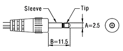 | P03A | Audio plug: A=2.5mm,B=11.5mm ;