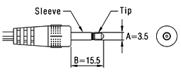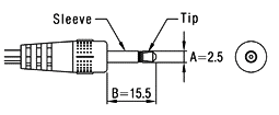 | P03C | Audio plug: A=2.5mm,B=15.5mm ;