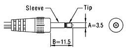| P03D | Audio plug: A=3.5mm,B=11.5mm ;